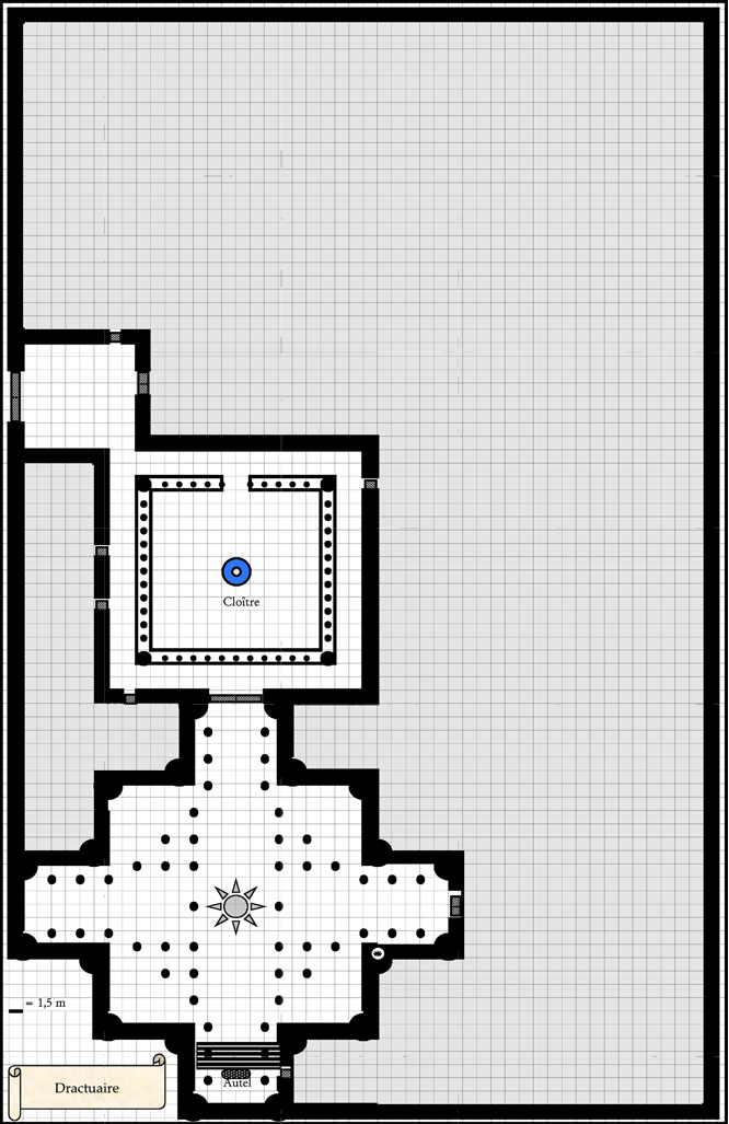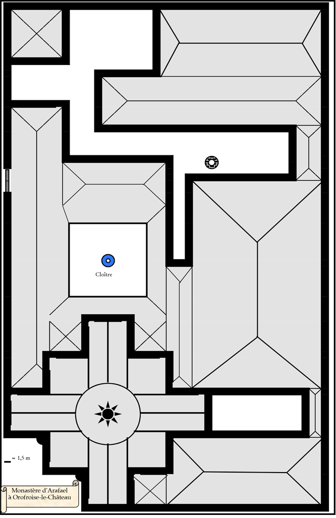 5 jours en prison, ça forge un caractère. Aussi c'est tout guilleret que Felto se joint à la procession quittant le château pour se rendre au Monastère. Blamort de Camberet est là, tout comme un grand nombre de nobles, serviteurs, et piétaille de tout poil. Là se déroulent les cérémonies mortuaires. Felto veille au grain pour que rien de fâcheux n'arrive à la famille d'Orofroise. Tard dans la journée la porte de la crypte est ouverte par les moines, à l'aide d'une clef lourde et complexe. La famille y descend pour les derniers hommages au mort et son inhumation. Felto est prié de rester dans la grande salle de la chapelle.