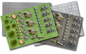Pour toujours plus de grands combats stratégiques, téléchargez et imprimez des terrains quadrillés, des feuilles d'objets et d'obstacles, découpez, collez, et jouez !